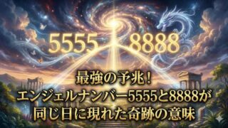 エンジェルナンバー 5555と8888が同じ日に現れたなら、それは人生好転の最強サインです。本記事ではエンジェルナンバー 5555と8888が同じ日に現れた本当の意味や金運・恋愛への影響を解説。宝くじや復縁など、強運を逃さず最大限に活かすための具体的な行動指針をお伝えします。