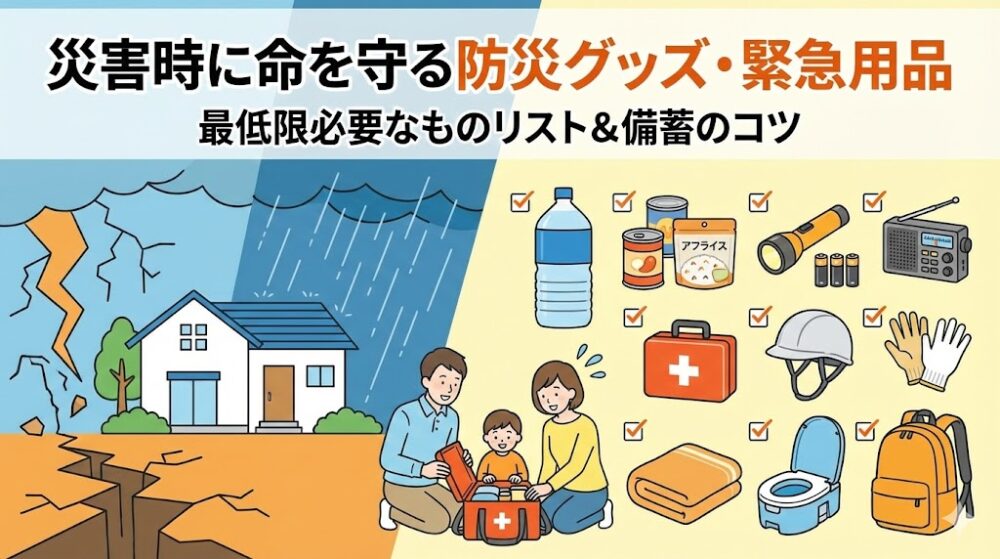 - 災害時に命を守る防災グッズや緊急用品