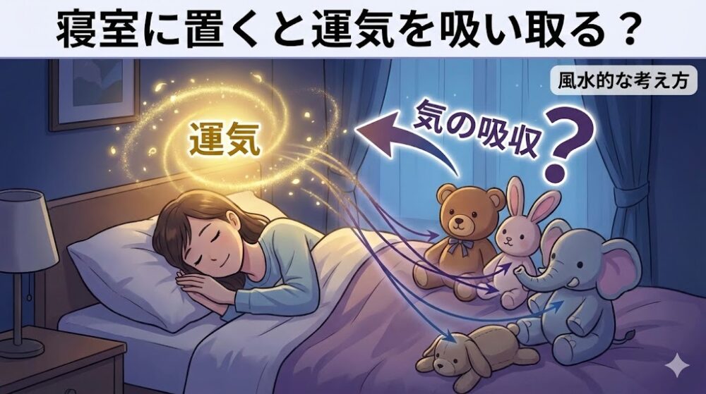 風水では、ぬいぐるみは人の「気(エネルギー)」を吸い取る性質があると考えられています。