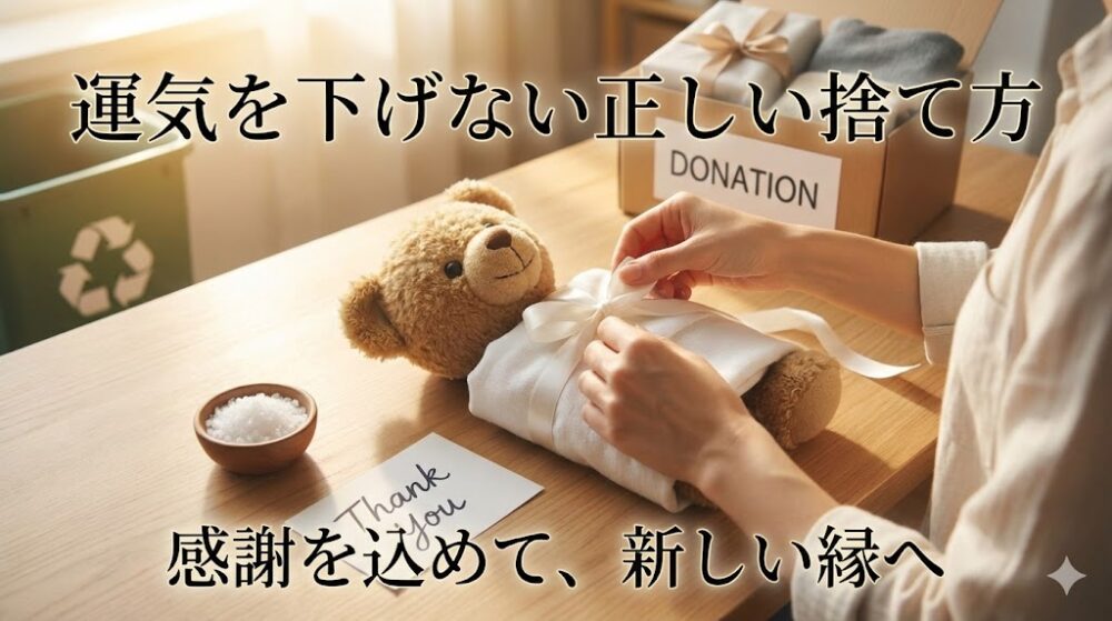「物を減らして運気を上げたい」「断捨離で引き寄せを加速させたい」と感じている方は、手放し方の考え方をより詳しくまとめた『断捨離は売らずに捨てると引き寄せが加速する!?理由と実践方法』も一緒に読んでみると、ぬいぐるみ以外の片付けにも応用しやすくなります。