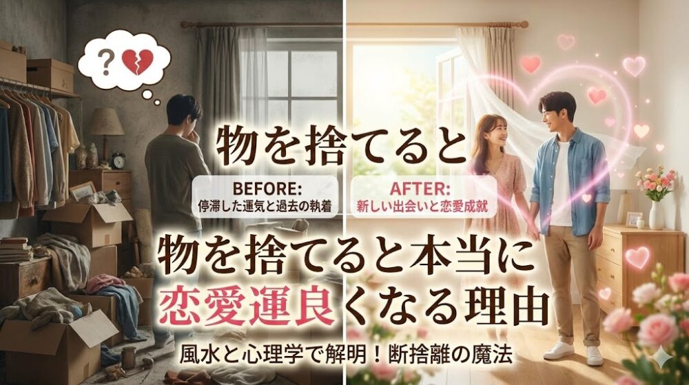 実は、「物を捨てると本当に恋愛運良くなる」というのは、単なるおまじないではなく、風水や心理学の視点からも非常に理にかなった開運アクションなんです。