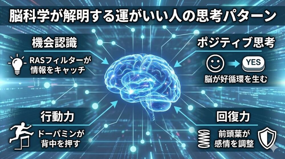 しかし実は、心理学や脳科学、統計学といった分野の研究が進むにつれて、運が良いと感じる人とそうでない人の間には、明確な「思考パターン」や「行動習慣」の違いがあることが科学的に指摘され始めています。