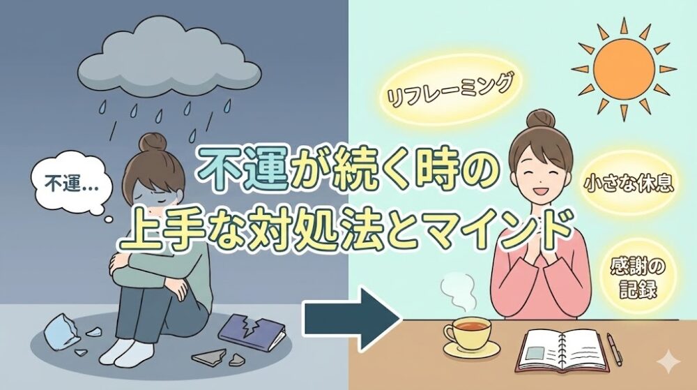 不運をただ嘆くのではなく、「これは何のサインだろう?」「ここから何を学べということだろう?」と一歩引いて考える余裕を持つことが、負の連鎖を断ち切るきっかけになるでしょう。